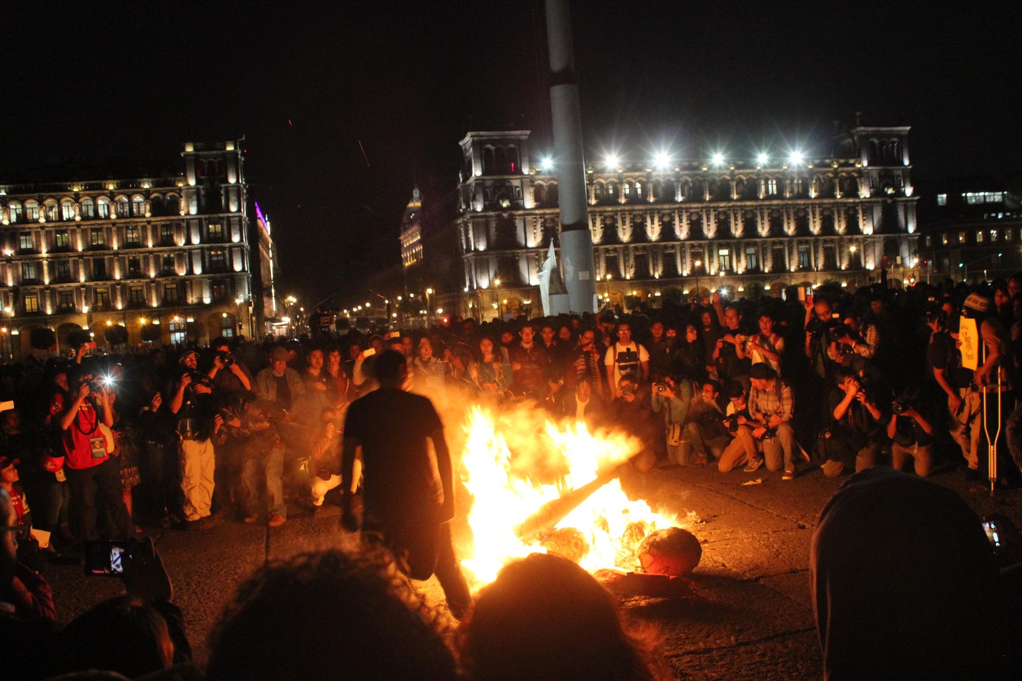 Below are a couple of photos I took last night at the culmination of the march in Mexico City´s central square – el zocalo.