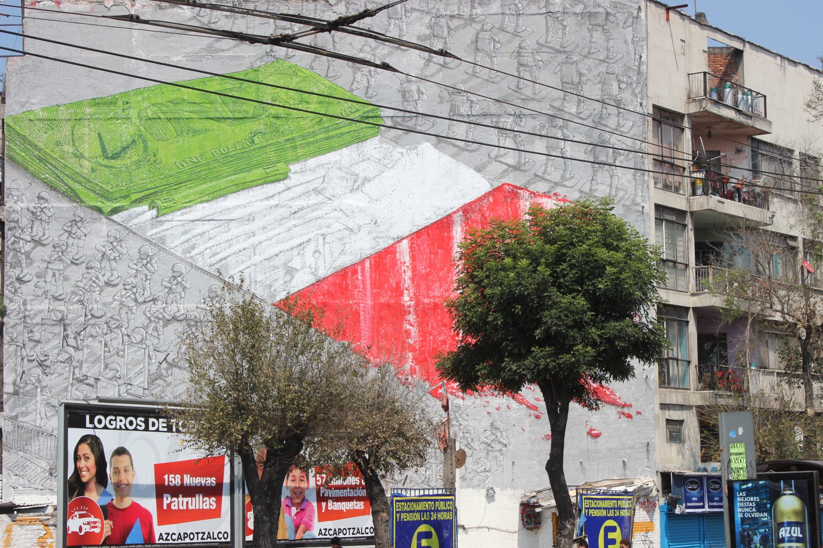 In this Mexican lottery series, I initially thought that the quintessential image to represent la bandera would be the huge Mexican flag which flies high over the capital’s downtown in la Plaza de la Constitución. I spent some time to take a worthy shot in which the flag unfurled in all of its red, green and white glory. However, given the sentiment of millions of dissatisfied Mexicans, I have chosen the warped image of the Mexican national flag that I published previously in Muralists get political in México DF. It succinctly expresses the cause and effect of Mexico’s insecurity issues.