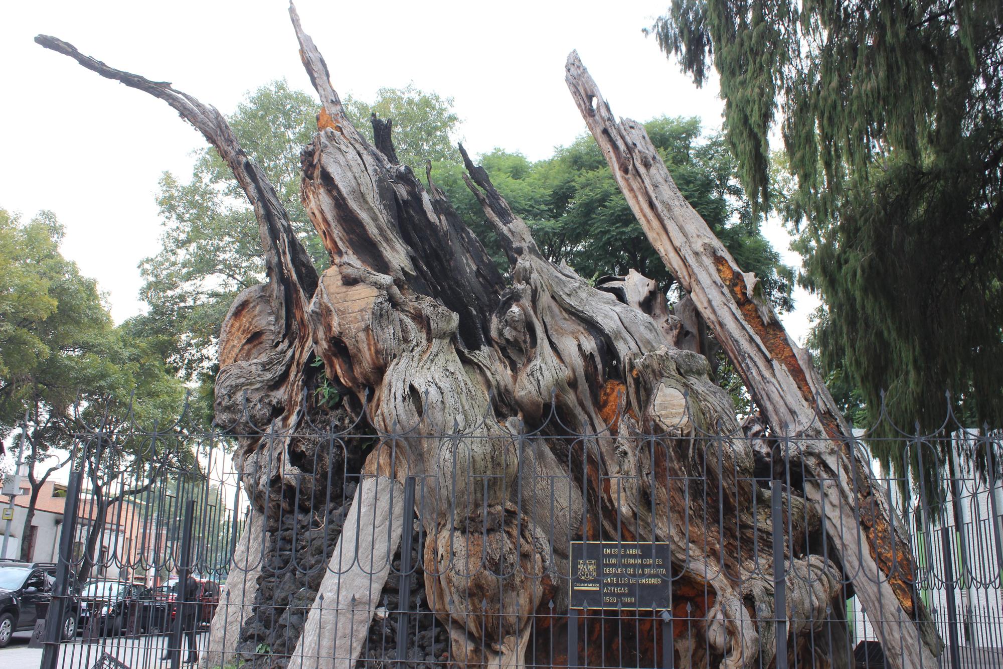 Cortes and other conquistadores who were successful in leaving the city, many injured, made it to a large ahuehuete tree where they rested and Cortes broke down in tears, devastated at the loss of life. This night became known as ‘la noche triste’ or in English, the night of sorrows. The tree, el árbol de la noche triste. It is this tree, reduced to a large stump that features in this, the fourth drawing of cards in la lotería mexicana. If you are in Mexico City you can visit the site of this famous tree, situated near the metro station Popotla, north of the city centre on Line 2. I recently did just that, 495 years after the fateful night described in this post.
